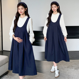 现货孕妇秋装套装2025新款镂空针织弹力衬衣袖孕妇上衣+孕妇背心