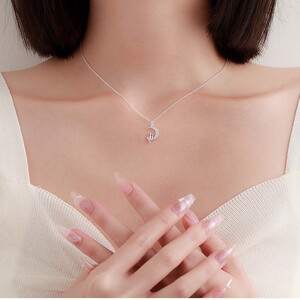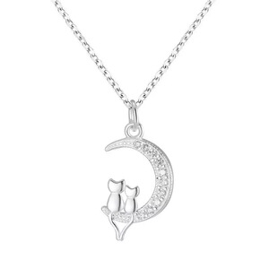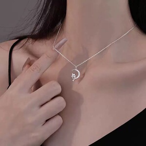 S925纯银月亮上的猫项链女 小众轻奢风吊坠冷淡风锁骨链纯银项链