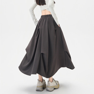 咖色半身裙女秋冬美拉德穿搭高腰显瘦A字中长款大摆裙不规则伞裙