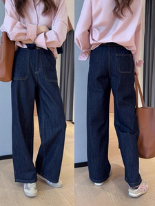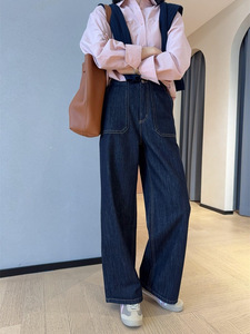 神仙长裤2025秋季天丝棉立体明线高腰显瘦直筒大口袋阔腿牛仔裤女