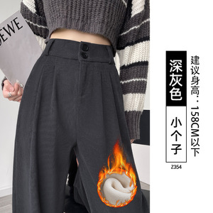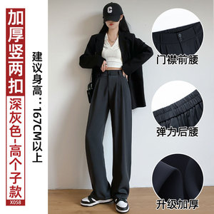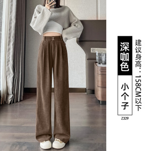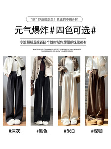 黑色西装裤子女2025新款秋季垂感直筒休闲裤小个子灯芯绒阔腿长裤