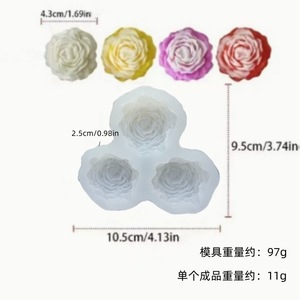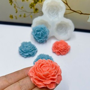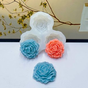 3连牡丹花香薰蜡烛硅胶模具DIY牡丹花香薰石膏家居摆件装饰模具