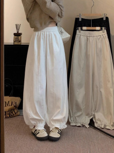 【工厂现货】木耳边裤子女秋2025新款气球裤高腰阔腿裤灯笼花苞裤