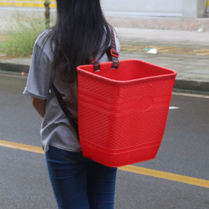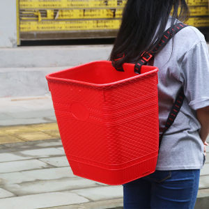 39cm可装水【新料】红色加厚方背篓☆