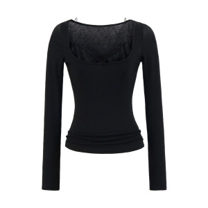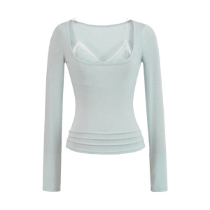 舒软蕾丝边长袖T恤女秋季拼接显瘦美式修身气质早秋打底衫上衣女