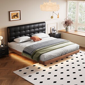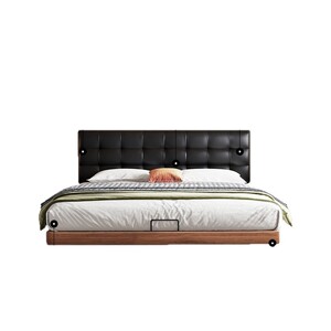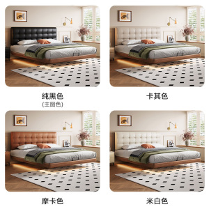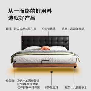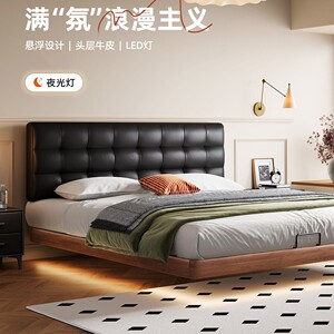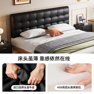 意式轻奢华夫格真皮床现代简约头层牛皮主卧1.8米法式复古双人床