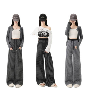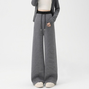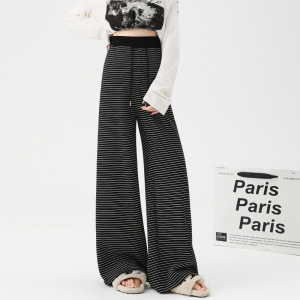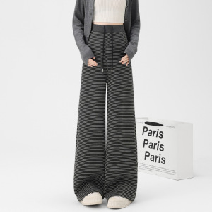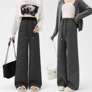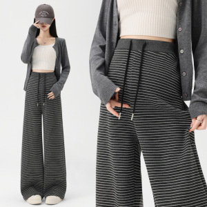 孕妇裤2025春秋季新款休闲条纹款抽绳松紧腰调节阔腿裤孕妇装秋装