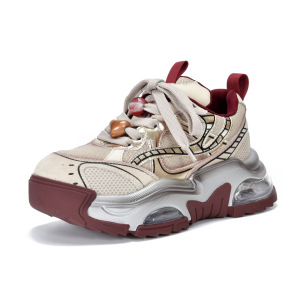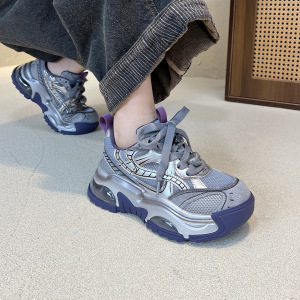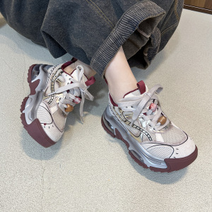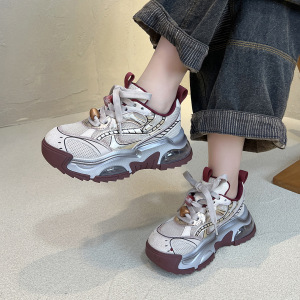 轻便厚底撞色老爹鞋女真皮运动休闲鞋2025秋季新款百搭女式单鞋潮