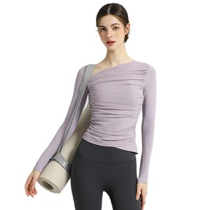 2025秋季新款瑜伽服带胸垫设计感跑步骑行训练服女运动t恤批发
