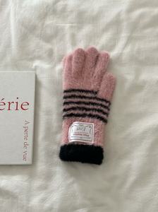 秋冬长款韩系简约百搭软糯漏指可触屏保暖骑行条纹毛毛手套女学生