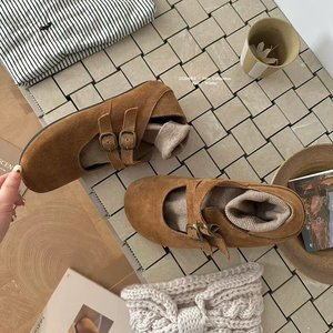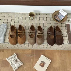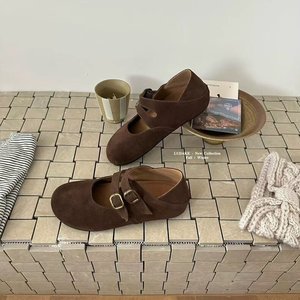 LUDAKE鹿大可 日系双扣复古玛丽珍鞋女秋款内增高磨砂皮勃肯单鞋