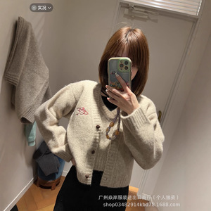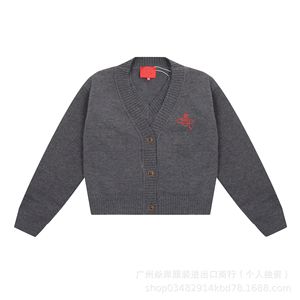 VIVI西太后土星刺绣V领开衫毛衣简约宽松显瘦休闲外套女一件代发