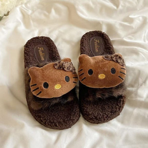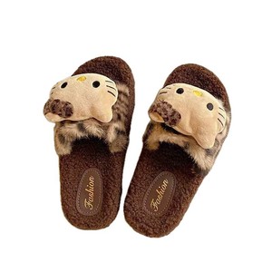 豹纹KT猫2025网红毛毛拖鞋女秋冬季可爱卡通棉拖鞋居家防滑可外穿