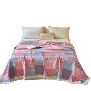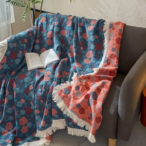冬季加厚棉麻大提花三层纱布毛毯办公室午睡毯沙发盖毯流苏边毯子