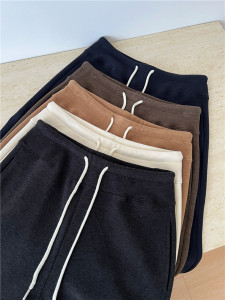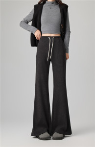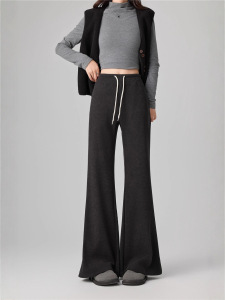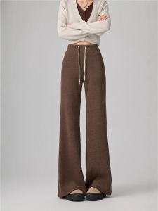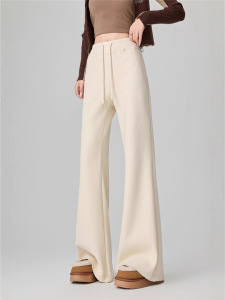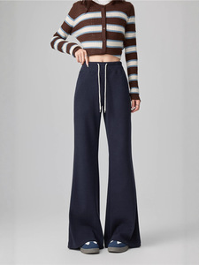 抽绳云感漫步微喇裤松弛慵懒拖地直筒裤显瘦藏青休闲裤长裤