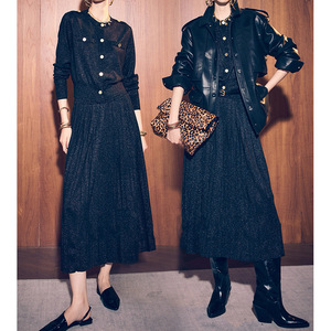 现货厂家批发 2025新款 真丝羊毛金银丝 针针织开衫套装 女