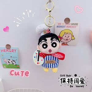 料理厨师蜡笔小新钥匙扣挂件创意画家小新公仔玩具少女心书包挂饰