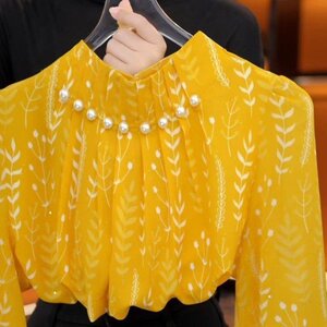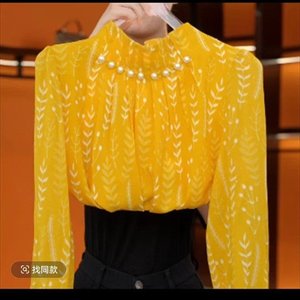 一件代发直播爆款显白黄色立领钉珠衬衫女装2025秋季新款长袖上衣
