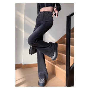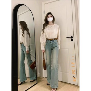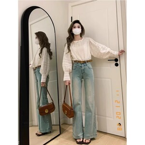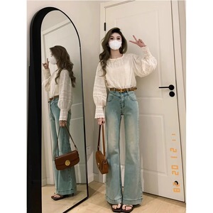 2025大码微喇牛仔裤女浅色秋季薄新款喇叭裤高腰复古美式高街裤子