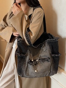 跨境百搭大容量新款简约渐变牛仔托特包大方通勤单肩包大包包批发
