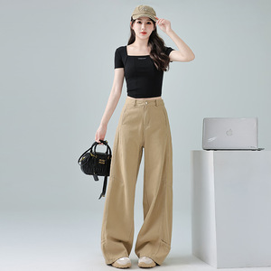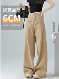 高腰阔腿牛仔裤女款秋季小个子牛仔阔腿裤女垂感卡其色裤子女款秋