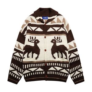日系复古麋鹿提花小翻领针织开衫外套男女宽松慵懒情侣秋冬毛衣 h