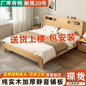 实木床简约现代双人床架1.5米经济型工厂直销1.2单人床出租房家用