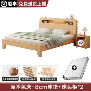 加厚原木床+8cm垫+2床头柜【入户安装】