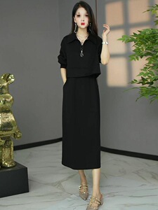 时尚亚马逊简约套装女2025秋季新款洋气短款卫衣显瘦背心裙两件套