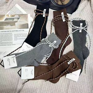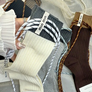 鞋带撞色设计师款布标字母堆堆长袜ins网红爆款个性欧货饰品女袜