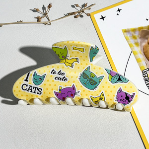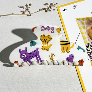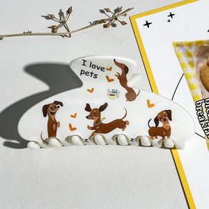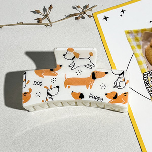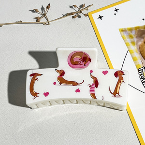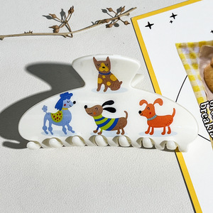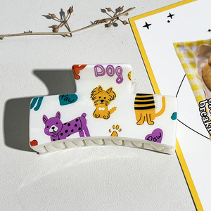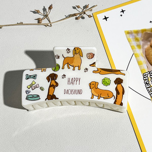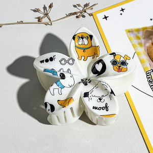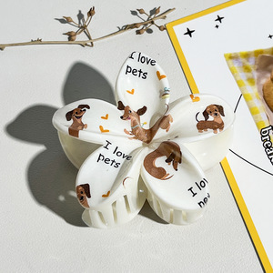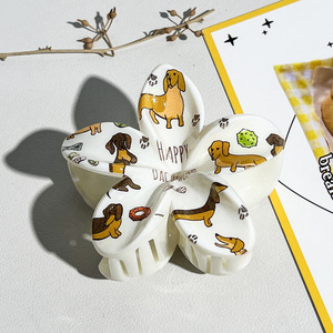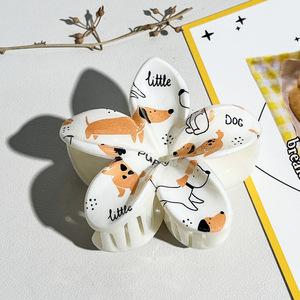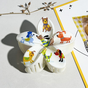 亚马逊新款卡通小狗uv印花朵发夹女可爱盘发抓夹后脑勺鲨鱼夹发饰