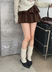 ME KAKAMEE十三行秋复古豹纹宽腰头层叠百搭蛋糕短裙半身裙 A2927