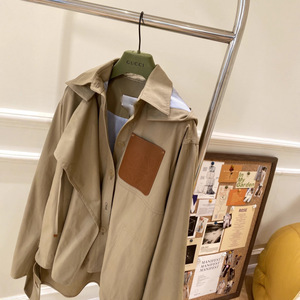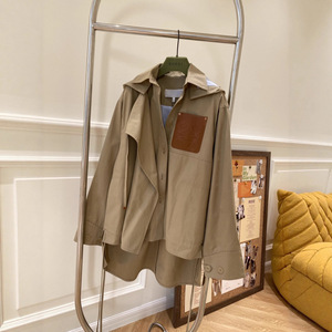 LW25秋冬新款假两件设计感宽松休闲前短后长派克风衣外套
