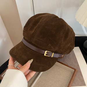 日系复古麂皮绒八角贝雷帽女英伦风文艺百搭气质显脸小云朵画家帽