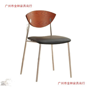 胡桃背-黑色坐垫-哑光皮-电镀腿