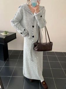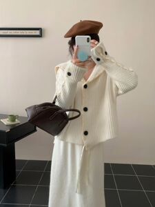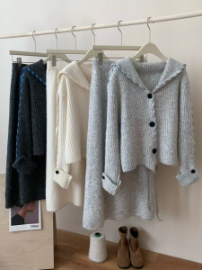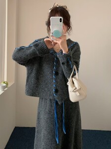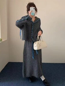 韩系海军领飘带针织开衫+半身长裙两件套女秋冬宽松软糯毛衣套装