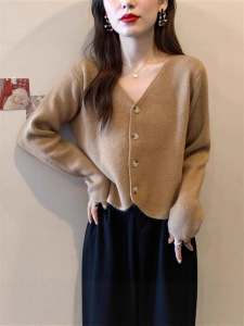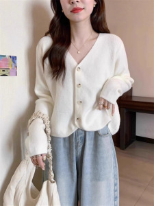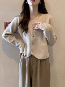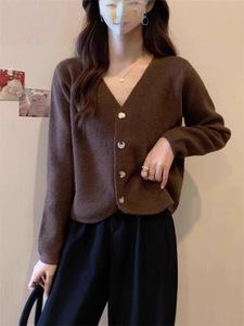 小香风针织开衫女春秋2025新款设计感v领长袖毛衣外套女短款上衣