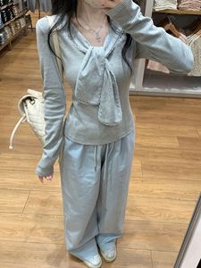 原版面料甜美风海军领系带长袖T恤女装秋季别致减龄显瘦条纹上衣