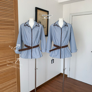 槿一 蓝条纹防晒长袖衬衫女秋季新款宽松百搭高级感chic衬衣慵懒