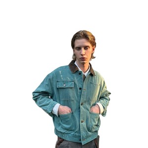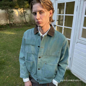 秋季美式复古水洗夹克炒盐做旧短宽版型外套上衣