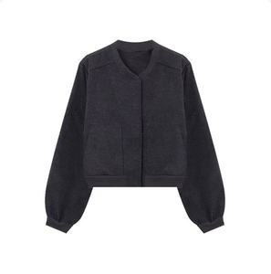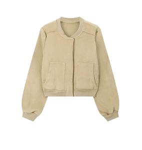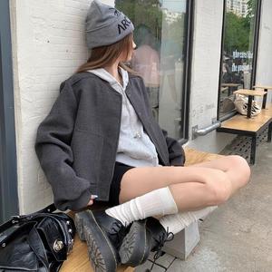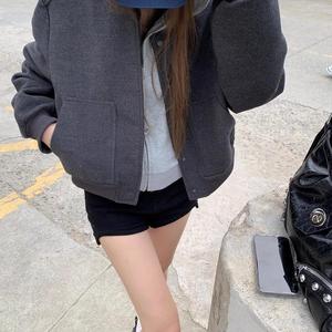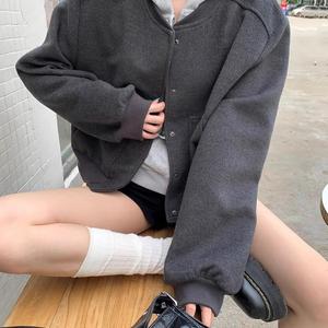 初秋外套女高级感灰色毛呢拉链棒球服气质短款夹克宽松休闲上衣潮