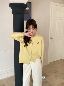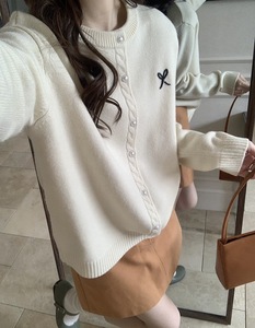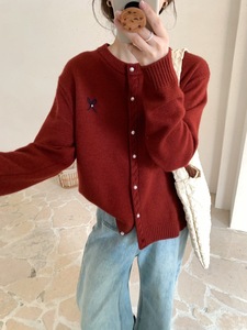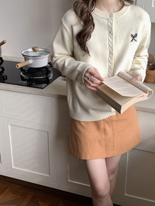 蝴蝶结针织衫创意珍珠扣开衫女秋冬季长袖圆领开衫外套温柔ZDG