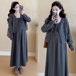 现货2025新款优质版针织孕妇吊带裙+刺绣针织外套孕妇套装