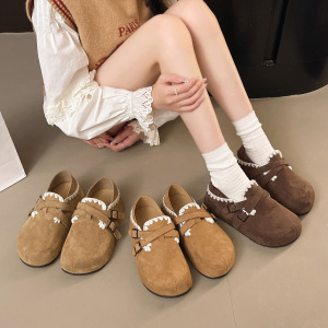 内增高花边乐福鞋女2025新款秋森系一脚蹬懒人鞋外穿复古百搭单鞋