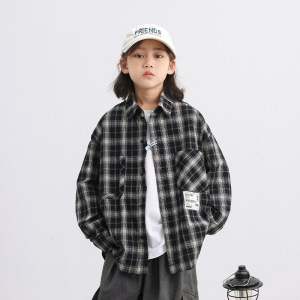 儿童装男童秋装格子衬衫外套春秋款2025新款大童男孩秋季长袖上衣