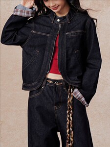 美式复古高街水洗分割牛仔外套女时尚高街短款外套显高