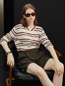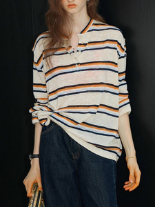 复古条纹半开亨利领长袖女2025秋季新款休闲百搭T恤上衣