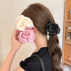 超仙缎面玫瑰花朵发夹女甜美可爱侧边抓夹半扎发鲨鱼夹发卡子发饰