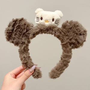 卡通掌门狗毛绒发箍毛茸茸可爱kt猫发卡熊耳朵头箍女2025新款头饰