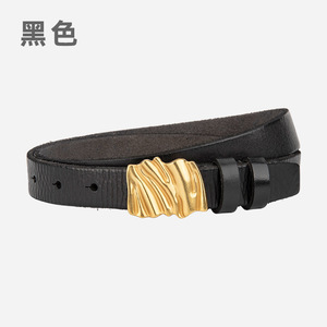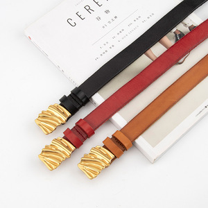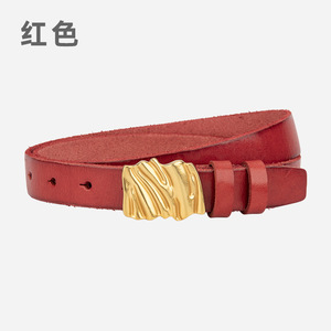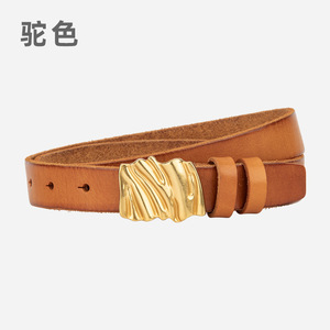 新款高级褶皱款真皮女士皮带头层牛皮百搭休闲装饰配牛仔裤女腰带